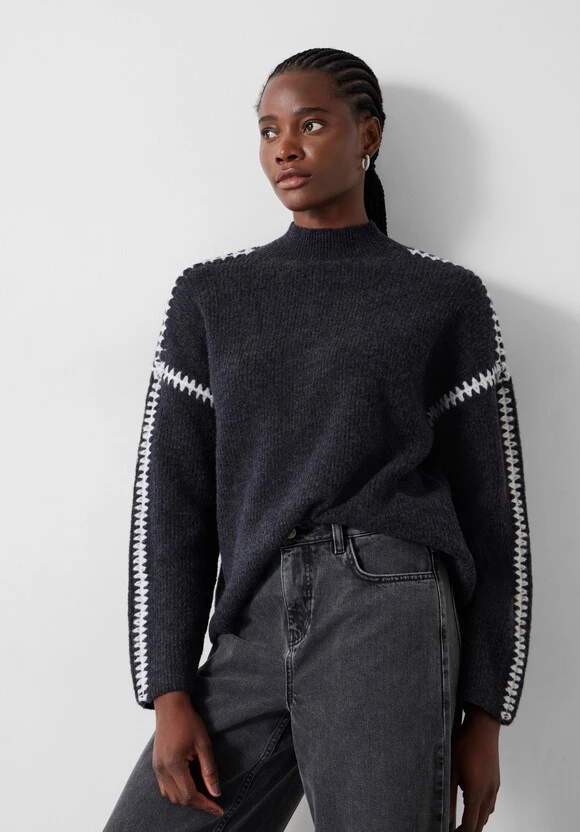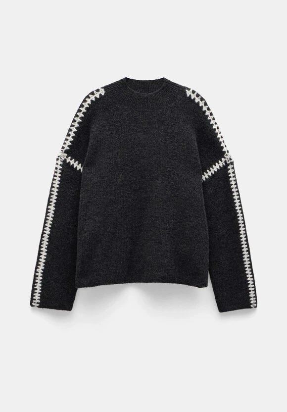 Sometimes all it takes is a simple detail to create a wow knit. Made with cosying wool, the relaxed fit of our Celine jumper is surrounded with contrasting crochet trims that give it that something extra. It looks just as good with jeans as it does with a bit of shimmer this season.