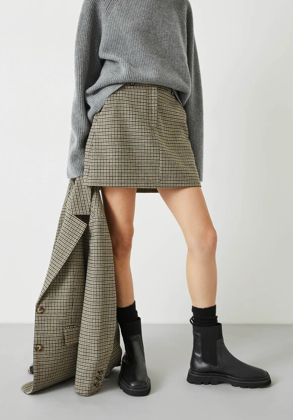 Think tailoring has to be formal? Think again. An elevated take on classic suiting, our Esmae mini skirt is made with a heavy hint of wool to create a cosy, thigh-skimming silhouette that works from winter through to spring. Just wear it over chunky boots or preppy, strapped flats.