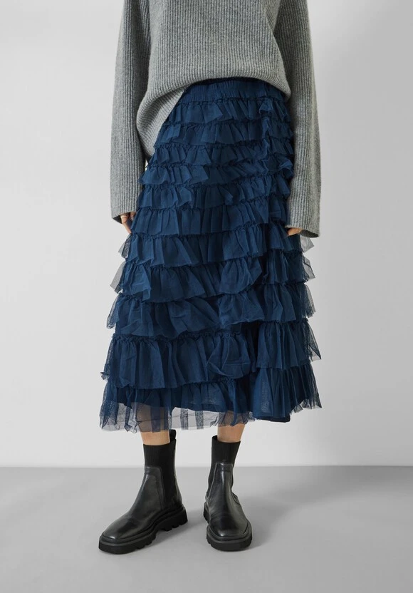 When we first set eyes on our Florence ruffle skirt (an update on our beloved Floriza) we let out an audible gasp of joy. It’s a statement piece alright, but we’ve made it feel instantly more wearable by giving it a soft jersey base. We’ve added layer upon layer of tiered mini ruffles in lightweight mesh to create maximum volume and impact.