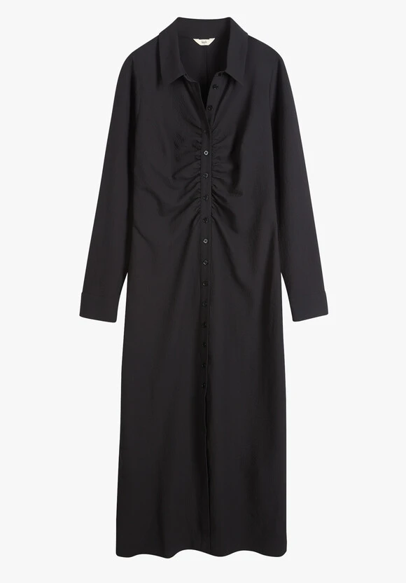 We love how flattering ruched detailing is, and we also love that it taps into the early 2000s revival that’s influencing the fashion world right now. Our Gianna shirt dress is ruched at the front with button fastenings, made from a stretchy textured fabric to add interest to its classic black tone.