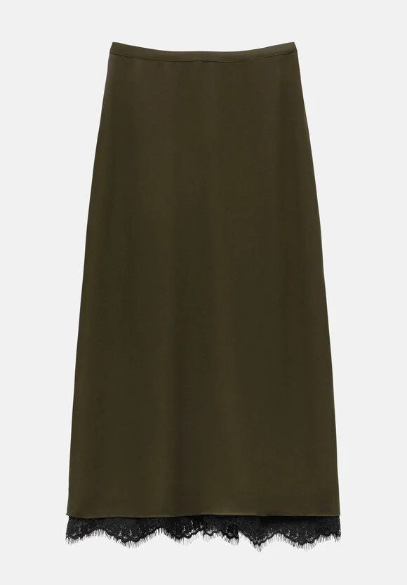 Lace has a place in our wardrobe year-round, and styles like the Jordana maxi skirt prove how versatile this flirty fabric can actually be. Trimming a slinky satin silhouette, the tonal, floral lace trim looks great layered over chunky ankle boots or slip-on sandals when the warm weather rolls back around.