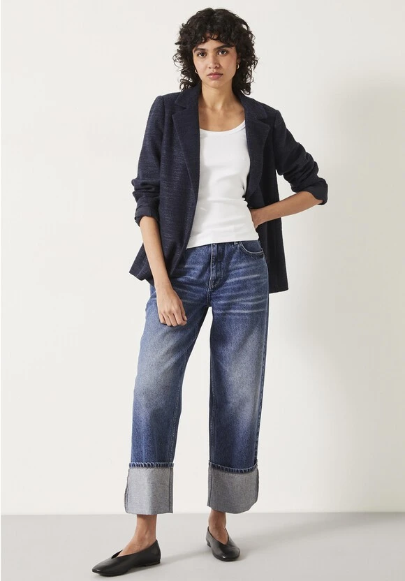 Whether it’s oversized cuts or casual versions like our Phoebe jersey blazer, it’s been a while since suiting was solely reserved to the office. With a textured finish, this single-breasted layer is waiting to be paired with this season’s cropped trousers and chunky loafers.